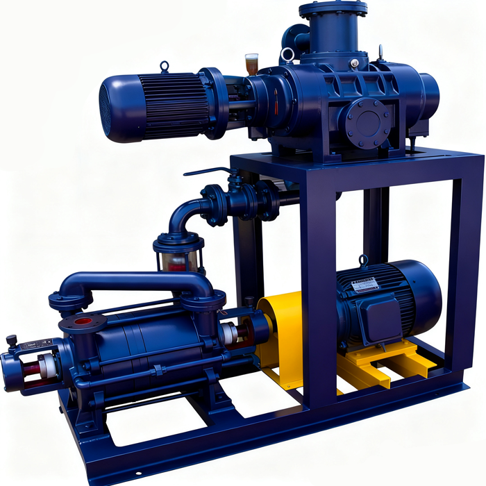 羅茨滑閥真空機組是由普通羅茨泵為主泵,雙級液環(huán)泵為前級泵串聯(lián)而成的真空抽氣機組。通過真空繼電器或電接點壓力表,可實現(xiàn)羅茨泵、液環(huán)泵的自動啟閉,自動過載保護。它除了具有普通羅茨真空泵,液環(huán)泵的一些特點外,本系列機組具有以下特點: